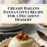 This Baileys Panna Cotta recipe is a creamy, indulgent dessert that combines the smooth richness of cream and milk with the signature flavor of Baileys Irish Cream. It’s an elegant no-bake treat that requires only simple ingredients and a few hours of chilling to achieve a perfectly silky texture. Perfect for serving at dinner parties or as a special after-dinner dessert, this panna cotta offers a luscious blend of sweetness and subtle boozy warmth.