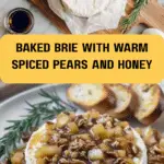 This delightful Baked Brie with Spiced Pears recipe combines warm, creamy Brie cheese with caramelized, spiced pears and a fragrant rosemary-infused honey drizzle. Perfect as an elegant appetizer or party snack, it’s served with crunchy baguette slices making every bite a perfect blend of sweet, savory, and nutty flavors.