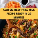 If you are craving a hearty, flavorful, and satisfying meal that comes together quickly, then this Beef Fried Rice Recipe is going to become your new go-to favorite. Packed with tender strips of sirloin steak, vibrant diced vegetables, and perfectly cooked rice all tossed in a savory soy-based sauce, this dish balances flavors and textures beautifully. Whether you’re whipping it up for a busy weeknight or impressing friends at dinner, this recipe delivers a delicious taste of homemade comfort food in just 20 minutes.