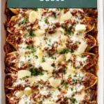 These Beef Stuffed Shells are a hearty and comforting Italian-American dish featuring jumbo pasta shells filled with a savory mixture of ricotta, mozzarella, Parmesan, basil pesto, and seasoned ground beef in a rich tomato meat sauce. Baked to perfection with melted cheese topping and garnished with fresh parsley, they’re perfect for family dinners or entertaining guests.