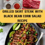 This vibrant Black Bean, Corn, and Tomato Salad paired with marinated grilled skirt steak is a fresh, flavorful dish perfect for summer barbecues or casual dinners. The steak is marinated in a zesty, spiced mixture and grilled to juicy perfection, while the salad combines colorful vegetables and herbs for a refreshing complement.