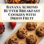 Delicious and wholesome Breakfast Cookies made with mashed bananas, almond butter, and a mix of nuts and dried fruits. These cookies are naturally sweetened with maple syrup and packed with oats, prunes, pepitas, almonds, and cranberries for a satisfying and nutritious start to your day.