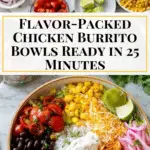 A vibrant and customizable Burrito Bowl featuring seasoned shredded chicken, rice, beans, fresh vegetables, and creamy toppings. This quick and easy skillet-based recipe is perfect for a satisfying meal in under 30 minutes.