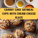 While the oat cups are baking, whip up that irresistible glaze! In a small bowl, mix softened cream cheese with powdered sugar, vanilla extract, and a splash of almond or coconut milk. Stir until smooth and silky—add more milk if needed to get the perfect drizzle consistency. Once the cups are cooled a little, generously drizzle or pipe this luscious glaze on top. It’s the ultimate carrot cake finish that takes these oatmeal cups over the top.