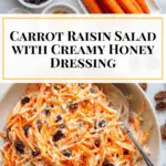 A refreshing and easy-to-make Carrot Raisin Salad combining shredded carrots, sweet raisins, and a creamy honey-lemon dressing made with Greek yogurt and mayonnaise, perfect for a light side dish or a healthy snack.