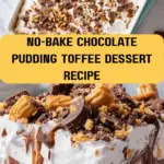 Now smooth the remaining two cups of whipped topping over the pudding. This cloud-like finishing layer adds volume, lightness, and eye-catching appeal. Sprinkle additional toffee bits and chocolate shavings on top for texture, sparkle, and flavor. These little details make all the difference in turning a simple dessert into something stunning and memorable.