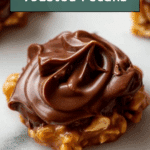 - Top with Chocolate: Spoon 2-3 teaspoons of melted chocolate onto each caramel cluster. Use the back of a spoon or mini scoop to swirl the chocolate decoratively. Optionally, top with flaky sea salt or additional pecan pieces.