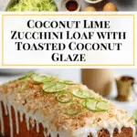 This Coconut Lime Zucchini Loaf is a moist and flavorful quick bread that combines the freshness of lime with sweet coconut and tender shredded zucchini. Perfect as a snack or dessert, it features a tangy lime glaze topped with toasted coconut for an extra burst of tropical flavor.