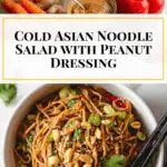 A refreshing and vibrant Cold Asian Noodle Salad featuring whole-wheat spaghetti tossed with crisp vegetables and a creamy, tangy peanut-based dressing. This easy, no-cook-after-boiling recipe is perfect for a quick lunch or a light dinner with a balance of savory, sweet, and spicy flavors.