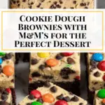 Indulge in these decadent Cookie Dough Brownies that combine rich, fudgy brownies with a luscious layer of edible, heat-treated cookie dough topped with mini chocolate chips and colorful M&M’s. Perfectly baked and chilled, these treats offer a delightful contrast of textures and flavors for brownie and cookie dough lovers alike.