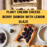 This Cream Cheese Berry Danish recipe features flaky puff pastry filled with a creamy, sweetened cream cheese mixture and topped with fresh blackberries tossed in lemon juice and sugar. After baking to a golden perfection, the danishes are finished with a tangy lemon-vanilla glaze, making them a delightful treat perfect for breakfast or dessert.