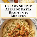 This classic Shrimp Alfredo recipe features tender linguine pasta tossed in a rich, creamy Parmesan sauce with perfectly seared shrimp. Ready in just 25 minutes, this comforting dish combines savory garlic, butter, and seasonings to create a luscious sauce that clings to every bite of pasta and plump shrimp—perfect for an elegant weeknight dinner or special occasion.
