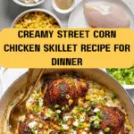 This Creamy Street Corn Chicken Skillet Recipe is a vibrant, comforting meal that’s sure to become a favorite in your rotation. Its combination of bold spices, fresh vegetables, creamy cheese, and zest of lime makes every dinner feel like a little celebration. Give it a try soon—you’ll be so glad you did!