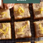 While the blondies bake, prepare the icing by whisking browned butter, fresh lemon juice, vanilla extract, powdered sugar, and a little water until silky and smooth. Once your bars are out of the oven, spoon this luscious glaze over them, then sprinkle generously with the lemon zest and granulated sugar mixture. Allow the icing to set for about 30 minutes before slicing into 16 generous squares.