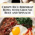 Crispy Bibimbap Bowl with Ground Beef, Spinach, and Fried Egg Recipe