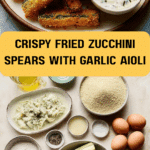 This Crispy Fried Zucchini recipe offers perfectly golden, crunchy zucchini spears coated with a flavorful seasoned flour and panko breadcrumb mixture, then deep-fried to crispy perfection. Ideal as a delicious appetizer or snack, these zucchini fries are served with optional garlic aioli or dill dip for an extra burst of flavor.