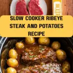 A hearty and comforting Crock Pot Steak and Potatoes recipe featuring tender ribeye steaks slow-cooked with baby gold potatoes and flavored with French onion soup mix and butter, perfect for an easy, satisfying meal.