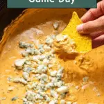 7. Serve warm: Serve the dip warm topped with crumbled blue cheese if desired, alongside celery sticks and chips for dipping.