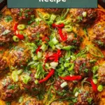 This flavorful Curry Meatballs recipe features tender meatballs simmered in a rich and creamy coconut milk-based red curry sauce, enhanced with garlic, ginger, and a touch of spice. Perfectly paired with jasmine rice and garnished with fresh cilantro and green onions, this dish offers a comforting and aromatic meal ready in just 35 minutes.