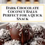Delicious and easy-to-make Dark Chocolate Coconut Balls that are perfect for a healthy snack or dessert. These no-bake treats combine creamy almond butter, unsweetened shredded coconut, and rich dark chocolate for a satisfying bite that is naturally sweetened with maple syrup or agave.