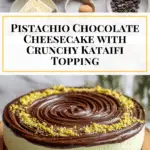 This Dubai Chocolate Cheesecake is a luxurious and decadent dessert featuring a chocolate graham cracker crust, a rich pistachio kataifi filling, and a creamy pistachio-infused cheesecake batter. Topped with a luscious chocolate ganache and crunchy pistachio nuts, this cheesecake combines unique Middle Eastern flavors with classic cheesecake elements, making it a show-stopping treat perfect for special occasions.