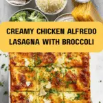 This Easy Chicken Alfredo Lasagna is a creamy and comforting Italian-American classic made with tender lasagna noodles, shredded rotisserie chicken, fresh broccoli, and a rich homemade Alfredo sauce layered with ricotta and mozzarella cheeses. Perfect for family dinners or special occasions, this dish offers a luscious blend of flavors and textures baked to bubbly perfection.