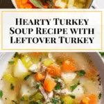 A comforting and easy-to-make turkey soup perfect for using up leftover turkey meat. This hearty soup combines tender vegetables, comforting potatoes, and shredded turkey in a flavorful broth infused with fresh herbs. Ready in just 30 minutes, it’s a nourishing meal ideal for chilly days or a simple weeknight dinner.