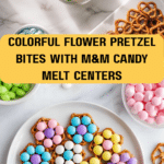 Delightful Flower Pretzel Bites combining crunchy snap pretzels with creamy white candy melts and colorful pastel M&Ms arranged as floral decorations. These bite-sized treats are perfect for parties, holidays, or any colorful snack cravings.