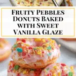 These Fruity Pebbles Donuts are a colorful and fun twist on classic baked donuts, featuring vibrant Fruity Pebbles cereal mixed into the batter and sprinkled on top of a sweet vanilla-strawberry glaze. Perfect for a playful breakfast or a delightful treat, these baked donuts combine a tender crumb with a fruity crunch and a creamy glaze for a truly memorable indulgence.