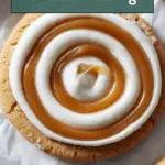 Fill another piping bag with the dulce de leche caramel sauce. Pipe a swirl pattern on each cooled cookie, then pipe cream cheese frosting inside those swirls to create an inviting, alternating caramel and frosting design that looks as delightful as it tastes.