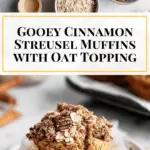 These gooey cinnamon streusel muffins are a delightful treat featuring a tender muffin base with a luscious cinnamon filling and a crunchy, buttery streusel topping made with oats and pecans. Perfect for breakfast or a cozy snack, these muffins combine warm spices and rich textures for an irresistible flavor experience.