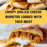 This Grilled Cheese Burrito recipe is a delicious Taco Bell copycat that combines seasoned ground beef, Spanish rice, creamy queso, and melted cheese wrapped in a flour tortilla and grilled to crispy perfection. Perfect for a comforting, cheesy meal with layers of flavor and a gooey cheese crust.
