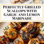 While the scallops marinate, preheat your grill to medium-high heat. Before placing the scallops on, lightly brush the grill grates with olive oil to ensure a beautiful sear and to prevent sticking.