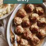For a casual vibe, serve the meatballs piled high on a rustic wooden platter with gravy gracefully drizzled on top and fresh herb sprigs scattered around. If you want to impress, plate individually with a small quenelle of mashed potatoes, meatballs nestling beside, and a delicate drizzle of gravy creating an elegant swirl.