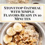 A simple and hearty stovetop oatmeal recipe that yields creamy, warm oatmeal perfect for breakfast. This recipe includes options to customize with a variety of delicious flavor combinations using fruits, spices, and sweeteners, making it a versatile and satisfying meal.