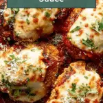 This Insanely Good Chicken Parmesan recipe features tender, crispy chicken breasts coated in a flavorful Calabrian chile-spiked batter and panko breadcrumb crust, fried to golden perfection and then baked under a bubbling layer of mozzarella and rich homemade tomato sauce. The sauce, made from sautéed onion, garlic, tomato paste, and crushed tomatoes simmered with herbs and a touch of sugar, perfectly complements the crispy chicken. Finished with fresh Italian parsley, this comforting Italian-American classic is perfect for a satisfying family meal.