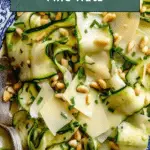 A light and refreshing Italian Zucchini Ribbon Salad featuring thinly shaved zucchini ribbons tossed in a tangy lemon and olive oil dressing, garnished with toasted pine nuts, shaved Parmesan, and fresh basil. Perfect as a quick appetizer or side dish, this salad emphasizes fresh flavors and simple ingredients for a healthy, elegant meal.