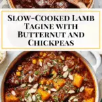 This Lamb Tagine is a rich and aromatic Moroccan-style stew featuring tender lamb pieces slow-cooked with warm spices, butternut squash, and chickpeas. Infused with Ras el Hanout and cumin, it delivers complex flavors in a comforting, hearty dish perfect for a cozy family meal.