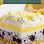 - Serve: Once chilled, slice the Lemon Blueberry Lush into 12 servings and enjoy chilled.