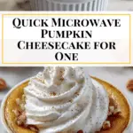 This Microwave Pumpkin Cheesecake is a quick and easy single-serving dessert combining creamy cream cheese and spiced pumpkin puree, perfectly cooked in just 90 seconds. Ideal for fall or any time you crave a seasonal treat, it’s customizable with your favorite toppings like caramel, pecans, and whipped cream.