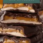 7. Dip and Coat: Dip each marshmallow and caramel disc into the melted chocolate, ensuring full coating. Allow excess chocolate to drip off before placing them back onto the lined baking sheets.
