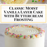 This Moist Vanilla Layer Cake is a classic, tender, and fluffy dessert perfect for celebrations or an everyday treat. Featuring layers of homemade vanilla cake filled and frosted with rich, creamy vanilla buttercream, it offers a deliciously sweet balance and light texture. Decorated with colorful sprinkles for a festive touch, it’s a sure crowd-pleaser that’s easy to assemble and bake.
