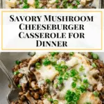 This Mushroom Cheeseburger Casserole combines the hearty flavors of ground beef and mushrooms with creamy goat cheese and melted Swiss cheese, baked to perfection for a comforting, cheesy dish perfect for a family dinner or casual gathering.
