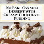 This No Bake Cannoli Delight is a luscious layered dessert featuring a crunchy graham cracker crust, creamy ricotta and cream cheese filling, chocolate pudding, and whipped cream, all topped with mini chocolate chips. With no baking required, it’s a simple yet indulgent treat perfect for any occasion.
