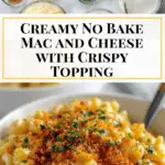 A creamy and comforting No Bake Mac and Cheese recipe featuring a rich cheese sauce made with Gruyere and Parmesan, topped with crunchy toasted panko breadcrumbs for extra texture. Ready in just 30 minutes, this stovetop dish is perfect for a quick and satisfying meal without the need for oven baking.