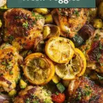 Finish off your One Pan Mediterranean Chicken Recipe with the remaining fresh parsley and some lemon slices for that extra splash of color and brightness. It’s these little touches that bring the dish to life and make it as inviting on the eye as it is on the palate.