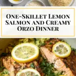 This One-Skillet Salmon with Orzo recipe offers a delicious, easy-to-make meal featuring perfectly seared salmon fillets nestled on a bed of creamy, lemon-infused orzo pasta. Cooked entirely in one non-stick skillet, this dish combines bright flavors from fresh lemon, aromatic shallots, and Italian seasoning, enriched with parmesan cheese and fresh parsley, making it a wholesome and satisfying dinner option.