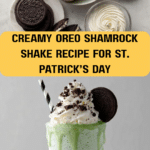A refreshing and indulgent Oreo Shamrock Shake that combines creamy vanilla ice cream, cold milk, mint extract, and crushed Oreo cookies, topped with whipped cream and more crushed Oreos for a festive green treat perfect for St. Patrick’s Day or any minty dessert craving.