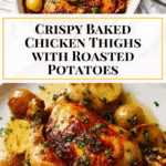 This recipe for Chicken Thighs with Potatoes offers a deliciously crispy-skinned chicken paired with tender, flavorful baby potatoes. Marinated in a blend of olive oil, balsamic vinegar, and aromatic spices, this one-pan meal is roasted to perfection in the oven, making it a comforting and easy-to-prepare dinner option that serves six.