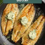 Turn off the heat, then spoon about one tablespoon of the chilled parsley lemon butter on top of each cooked filet. The warmth of the fish will gently melt the butter, creating a luscious sauce that clings to every bite. Remove the fish from the skillet carefully and get ready to serve this stunning dish.